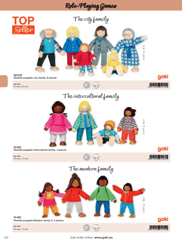 1024 013594 5149584 013594 5146374 013594 2921843+3+3+%u00ef 9 - 11 cm %u00f0%u00ef 9 - 11 cm %u00f0%u00ef 9 - 11 cm %u00f0Just order online: www.goki.euRole-Playing Games51495Flexible puppets Modern family II, 4 pieces51463Flexible puppets Intercultural family, 4 piecesSO218Flexible puppets city family, 6 piecesper set36 sets | 72 setsper set36 sets | 72 setsper set32 sets | 64 setsThe city familyThe intercultural familyThe modern family