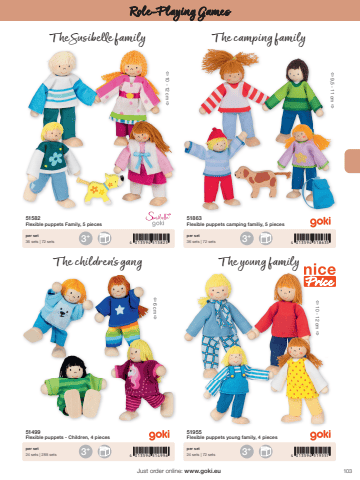 1033+3+3+3+4 013594 5158254 013594 5149964 013594 5186354 013594 519557%u00ef 10 - 12 cm %u00f0%u00ef 9,5 - 11 cm %u00f0%u00ef 10 - 12 cm %u00f0%u00ef 6 cm %u00f0Just order online: www.goki.euRole-Playing Games51582Flexible puppets Family, 5 pieces51499Flexible puppets - Children, 4 pieces51863Flexible puppets camping familiy, 5 pieces51955Flexible puppets young family, 4 piecesper set36 sets | 72 setsper set24 sets | 288 setsper set36 sets | 72 setsper set24 sets | 72 setsThe Susibefi e familyThe children%u2018s gangThe camping familyThe young family