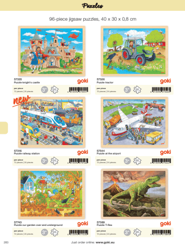 2603+3+3+3+3+3+4 013594 5733514 013594 5731604 013594 5774344 013594 5732694 013594 5754474 013594 573894969696969696Just order online: www.goki.euPuzzles57335Puzzle knight%u2018s castle57316Puzzle railway station57743Puzzle our garden over and underground57326Puzzle tractor57544Puzzle at the airport57389Puzzle T-Rexper piece12 pieces | 24 piecesper piece12 pieces | 24 piecesper piece12 pieces | 24 piecesper piece12 pieces | 24 piecesper piece12 pieces | 24 piecesper piece12 pieces | 24 pieces96-piece jigsaw puzzles, 40 x 30 x 0,8 cm
