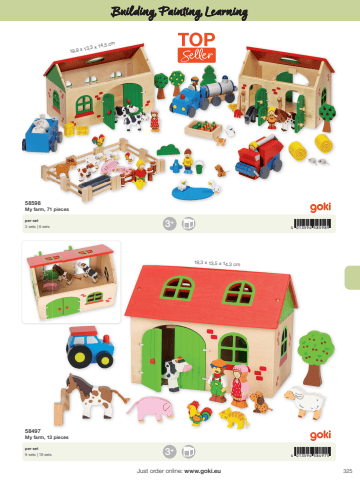 3254 013594 5849754 013594 5859893+3+19,9 x 13,3 x 14,5 cm19,3 x 13,5 x 14,3 cmJust order online: www.goki.euBuilding, Painting, Learning58497My farm, 13 pieces58598My farm, 71 piecesper set9 sets | 18 setsper set3 sets | 6 sets