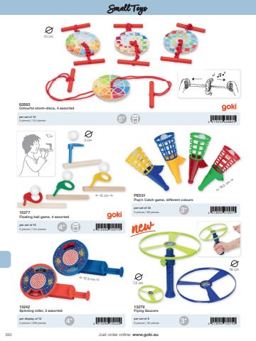 3904+3+3+ 4+4 013594 1537754 013594 2103174 013594 132428 4 013594 1327945 4 013594 628839+10 cm%u00ef 15 cm %u00f03 cm%u00ef 18,5 cm %u00f0%u00ef 12,5 cm %u00f018 cm7,5 cmJust order online: www.goki.euSmall Toys15377Floating ball game, 4 assortedPE031Pop%u2019n Catch game, different colours13279Flying Saucers13242Spinning roller, 2 assortedper set of 120 pieces | 144 piecesper set of 240 pieces | 96 piecesper set of 66 pieces | 48 piecesper display of 120 pieces | 288 pieces62883Colourful storm-discs, 4 assortedper set of 120 pieces | 144 pieces