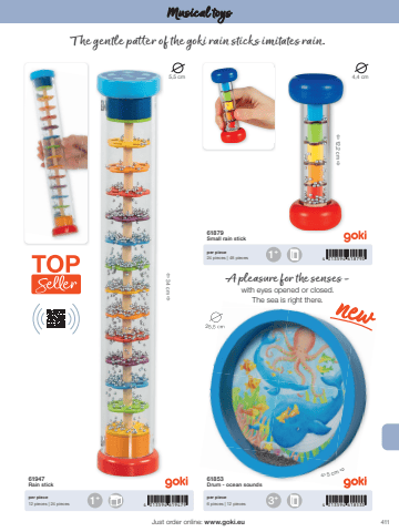 4111+3+4 013594 6187931 4 013594 618533+4 013594 6194795,5 cm%u00ef 34 cm %u00f0%u00ef 12,2 cm %u00f04,4 cm25,5 cm%u00ef 5 cm %u00f0Just order online: www.goki.euMusical toys61879Small rain stick61853Drum - ocean soundsper piece24 pieces | 48 piecesper piece6 pieces | 12 pieces61947Rain stickper piece12 pieces | 24 piecesThe gentle paffl er of the goki rain stick s imitates rain.A pleasure for the senses - with eyes opened or closed. The sea is right there.