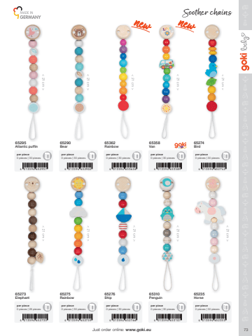 73< 21 cm > < 21 cm > < 21 cm > < 21 cm >< 21 cm >< 21 cm >< 21 cm >< 21 cm > < 21 cm >4 013594 6527354 013594 6529574 013594 6527594 013594 6529024 013594 6527664 013594 6536264 013594 6531074 013594 6535894 013594 6523534 013594 652742< 21 cm > < 21 cm > < 21 cm > < 21 cm >Just order online: www.goki.euSoother chainsper piece0 pieces | 28 piecesper piece0 pieces | 30 piecesper piece0 pieces | 30 piecesper piece0 pieces | 30 piecesper piece0 pieces | 30 piecesper piece0 pieces | 30 piecesper piece0 pieces | 30 piecesper piece0 pieces | 30 piecesper piece0 pieces | 30 piecesper piece0 pieces | 30 pieces65273Elephant65295Atlantic puffin65275Rainbow65290Bear65276Ship65362Rainbow65310Penguin65358Van65235Horse65274Bird