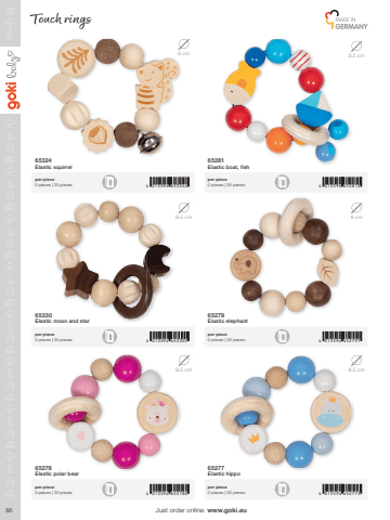 864 013594 6527804 013594 6533054 013594 6532444 013594 6527734 013594 6527974 013594 6528108 cm 9,5 cm8,5 cm 8 cm8,5 cm 8,5 cmJust order online: www.goki.eu65278Elastic polar bear65330Elastic moon and star65324Elastic squirrel65277Elastic hippo65279Elastic elephant65281Elastic boat, fishper piece0 pieces | 30 piecesper piece0 pieces | 30 piecesper piece0 pieces | 30 piecesper piece0 pieces | 30 piecesper piece0 pieces | 30 piecesper piece0 pieces | 30 piecesTouch rings