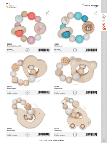 874 013594 6533674 013594 6521934 013594 6529404 013594 6533984 013594 6521484 013594 6529199 cm 9 cm< 10 cm >< 10 cm >< 11 cm >< 10 cm >Just order online: www.goki.eu65336Elastic bird65219Elastic heart65294Elastic atlantic puffin65339Elastic car65214Elastic bear65291Elastic bearper piece0 pieces | 30 piecesper piece0 pieces | 30 piecesper piece0 pieces | 30 piecesper piece0 pieces | 30 piecesper piece0 pieces | 30 piecesper piece0 pieces | 30 piecesTouch rings