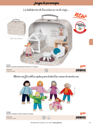 1014 013594 5149654 013594 5144393+3+%u00ef 9 - 11 cm %u00f025,5 x 10,3 x 19,5 cmSimplemente solicite en la web: www.goki.euJuegos de personajes51496Mu%u00f1ecos flexibles familia moderna, 6 piezas51443Malet%u00edn, peque%u00f1o apartamento Paris No. 5, 10 piezascada juego32 juegos | 64 juegoscada juego4 juegos | 8 juegosMu%u00f1ecas flexibles aptas para todas las casas de mu%u00f1ecasLa habitaci%u00f3n de los ni%u00f1os se va de viaje...