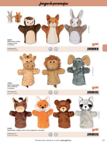 1294 013594 1535464 013594 5096194 013594 5180311+1+1+%u00ef 27,5 cm %u00f0%u00ef 24 cm %u00f0%u00ef 28 cm %u00f0Simplemente solicite en la web: www.goki.euJuegos de personajes15354Marionetas jirafa, le%u00f3n y elefante3 surtidos50961Marionetas ardilla, conejo y erizo, 3 surtidos51803Marionetas, caballo, zorro, oso y mapache, 4 surtidoscada juego de 60 piezas | 72 piezascada juego de 30 piezas | 96 piezascada juego de 40 piezas | 96 piezas