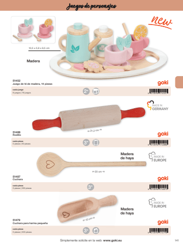 1414 013594 5147984 013594 5148804 013594 5148734 013594 5145213+3+3+2+%u00ef 10 cm %u00f0%u00ef 20 cm %u00f0%u00ef 21,2 cm %u00f010,5 x 5,9 x 9,5 cmSimplemente solicite en la web: www.goki.euJuegos de personajes51479Cuchara para harina peque%u00f1a51488Rodillo51487Cuchara51452Juego de t%u00e9 de madera, 14 piezascada pieza0 piezas | 200 piezascada pieza0 piezas | 50 piezascada pieza0 piezas | 250 piezascada juego8 juegos | 16 juegosMadera de hayaMadera de hayaMadera
