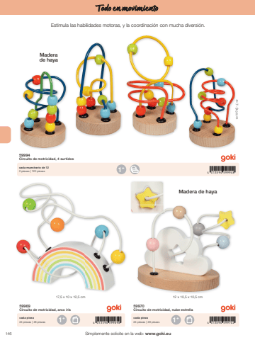 1461 4 013594 599948+1+ 1+4 013594 599696 4 013594 599702%u00ef 7 - 9 cm %u00f017,5 x 10 x 12,5 cm 12 x 10,5 x 10,5 cmSimplemente solicite en la web: www.goki.euTodo en movimiento59994Circuito de motricidad, 4 surtidoscada muestrario de 120 piezas | 120 piezas59969Circuito de motricidad, arco iris59970Circuito de motricidad, nube estrellacada pieza24 piezas | 48 piezascada pieza24 piezas | 48 piezasMadera de hayaMadera de hayaEstimula las habilidades motoras, y la coordinaci%u00f3n con mucha diversi%u00f3n.