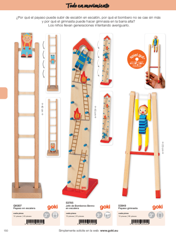 1504 013594 058070 4 013594 537858 4 013594 5394943+ 3+ 3+%u00ef 40 cm %u00f0%u00ef 45 cm %u00f0%u00ef 23 cm %u00f0Simplemente solicite en la web: www.goki.euTodo en movimientoGK807Payaso en escalera53785Jefe de Bomberos Benno en escalera53949Payaso gimnastacada pieza12 piezas | 48 piezascada pieza10 piezas | 20 piezascada pieza12 piezas | 96 piezas%u00bfPor qu%u00e9 el payaso puede subir de escal%u00f3n en escal%u00f3n, por qu%u00e9 el bombero no se cae sin m%u00e1s y por qu%u00e9 el gimnasta puede hacer gimnasia en la barra alta? Los ni%u00f1os llevan generaciones intentando averiguarlo.