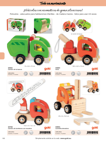 1662+2+2+3+4 013594 5596454 013594 5578944 013594 5596524 013594 55850115 x 8,5 x 10 cm 18,5 x 8,5 x 10 cm20 x 9 x 15,5 cm19,6 x 9 x 13,9 cmSimplemente solicite en la web: www.goki.euTodo en movimiento55964Cami%u00f3n de la basura55789Cami%u00f3n de bomberos con escalera55965Gr%u00faa55850Carretilla elevadoracada pieza6 piezas | 12 piezascada pieza6 piezas | 12 piezascada pieza6 piezas | 12 piezascada pieza6 piezas | 12 piezas%u00a1Veh%u00edculos con neum%u00e1ticos de goma silenciosos!Robustos - adecuados para habitaciones infantiles - de madera maciza - listos para usar mil vecessin cami%u00f3n de basura