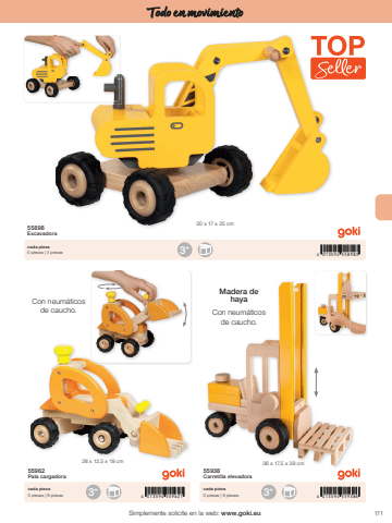 1713 4 013594 558983+3+ 3+4 013594 559621 4 013594 55938620 x 17 x 25 cm28 x 12,5 x 19 cm 36 x 17,5 x 39 cmSimplemente solicite en la web: www.goki.euTodo en movimiento55898Excavadoracada pieza0 piezas | 4 piezas55962Pala cargadora55938Carretilla elevadoracada pieza0 piezas | 6 piezascada pieza0 piezas | 6 piezasCon neum%u00e1ticos de caucho.Madera de hayaCon neum%u00e1ticos de caucho.