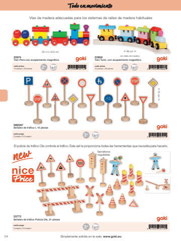 17425 x 4 x 6,5 cm2+ 2+4 013594 559744 4 013594 558662%u00ef 28 cm %u00f04 013594 3839744 013594 5377353+3+%u00ef 10 cm %u00f0Simplemente solicite en la web: www.goki.euTodo en movimiento55974Tren Per%u00fa con acoplamiento magn%u00e9tico55866Tren Turin, con acoplamiento magn%u00e9ticocada pieza12 piezas | 48 piezascada pieza12 piezas | 48 piezasWM397Se%u00f1ales de tr%u00e1fico I, 15 piezas53773Se%u00f1ales de tr%u00e1fico Polic%u00eda Ole, 21 piezascada juego0 juegos | 24 juegoscada juego0 juegos | 24 juegossin rieles de maderaV%u00edas de madera adecuadas para los sistemas de ra%u00edles de madera habitualesEl polic%u00eda de tr%u00e1fico Ole controla el tr%u00e1fico. Este set le proporciona todas las herramientas que necesita para hacerlo.Sem%u00e1foros regulables