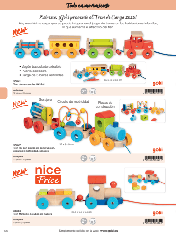 1764 013594 5584194 013594 5583032+2+2 4 013594 558471+55 x 7,6 x 8,8 cm37 x 8 x 9 cm26,5 x 9,5 x 9,5 cmSimplemente solicite en la web: www.goki.euTodo en movimiento55841Tren de mercanc%u00edas GK-Rail55830Tren Marseille, 5 cubos de maderacada pieza12 piezas | 24 piezascada pieza0 piezas | 12 piezas55847Tren R%u00edo con piezas de construcci%u00f3n, circuito de motricidad, sonajerocada pieza12 piezas | 24 piezasEstreno: %u00a1Goki presenta el Tren de Carga 2025!Hay much%u00edsima carga que se puede integrar en el juego de trenes en las habitaciones infantiles, lo que aumenta el atractivo del tren.%u2022 Vag%u00f3n basculante extra%u00edble%u2022 Puerta corredera %u2022 Carga de 5 barras redondasSonajero Circuito de motricidad Piezas de construcci%u00f3n