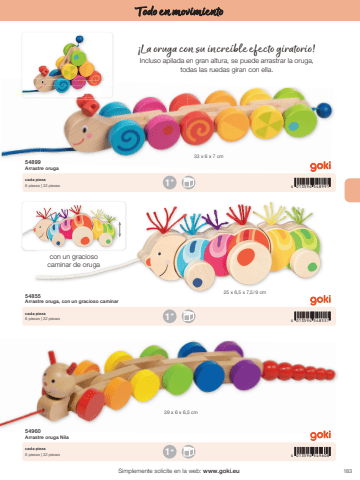1834 013594 5496084 013594 5485574 013594 5489911+1+1+33 x 6 x 7 cm25 x 6,5 x 7,5 / 9 cm39 x 6 x 6,5 cmSimplemente solicite en la web: www.goki.euTodo en movimiento54960Arrastre oruga Nila54855Arrastre oruga, con un gracioso caminar54899Arrastre orugacada pieza8 piezas | 32 piezascada pieza8 piezas | 32 piezascada pieza8 piezas | 32 piezas%u00a1La oruga con su incre%u00edble efecto giratorio!Incluso apilada en gran altura, se puede arrastrar la oruga, todas las ruedas giran con ella.con un gracioso caminar de oruga