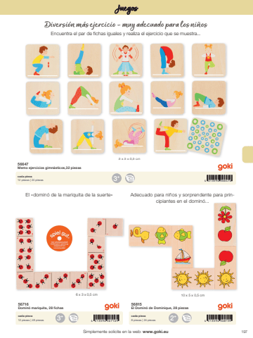1975 x 5 x 0,5 cm3 4 013594 566476+3+ 2+4 013594 567169 4 013594 5681596 x 3 x 0,5 cm 10 x 5 x 0,5 cmSimplemente solicite en la web: www.goki.euJuegos56647Memo ejercicios gimn%u00e1sticos,32 piezascada pieza12 piezas | 24 piezas56716Domin%u00f3 mariquita, 28 fichas56815El Domin%u00f3 de Dominique, 28 piezascada pieza12 piezas | 48 piezascada pieza8 piezas | 24 piezasEl %u00abdomin%u00f3 de la mariquita de la suerte%u00bb Adecuado para ni%u00f1os y sorprendente para principiantes en el domin%u00f3...Diversi%u00f3n m%u00e1s ejercicio - muy adecuado para los ni%u00f1osEncuentra el par de fichas iguales y realiza el ejercicio que se muestra...
