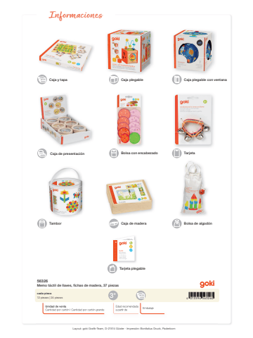 Unidad de ventaCantidad por cart%u00f3n I Cantidad por cart%u00f3n grandeEdad recomendadaa partir de EmbalajeInformacionesLayout: goki Grafik-Team, D-21514 G%u00fcster %u00b7 Impresi%u00f3n: Bonifatius Druck, PaderbornCaja y tapa Caja plegable Caja plegable con ventanaCaja de presentaci%u00f3n Bolsa con encabezado TarjetaTambor Caja de madera Bolsa de algod%u00f3nTarjeta plegable3 4 013594 563260+Unidad de ventaCantidad por cart%u00f3n I Cantidad por cart%u00f3n grandeEdad recomendadaa partir de Embalaje56326Memo t%u00e1ctil de llaves, fichas de madera, 37 piezascada pieza12 piezas | 24 piezasKubbWikingerspielVikings gameJeu de vikingsJuego vikingoGioco vichinghi5+21pcs2-6