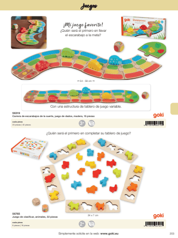 2034 013594 5676574 013594 5631922+3+%u00ef 54 - 58 cm %u00f024 x 7 cmSimplemente solicite en la web: www.goki.euJuegos56765Juego de clasificar, animales, 32 piezas56319Carrera de escarabajos de la suerte, juego de dados, madera, 15 piezascada pieza8 piezas | 16 piezascada pieza20 piezas | 40 piezas%u00a1Mi juego favorito!%u00bfQui%u00e9n ser%u00e1 el primero en llevar el escarabajo a la meta?Con una estructura de tablero de juego variable.%u00bfQui%u00e9n ser%u00e1 el primero en completar su tablero de juego?