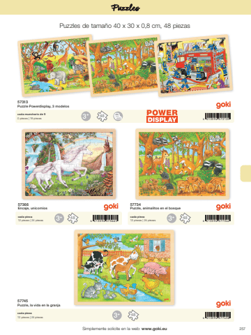 2573+ 3+4 013594 573665 4 013594 57734248 484 013594 5731393 4 013594 577458+ 483+ 48Simplemente solicite en la web: www.goki.euPuzzles57366Encaje, unicornios57734Puzzle, animalitos en el bosquecada pieza12 piezas | 24 piezascada pieza12 piezas | 24 piezas57313Puzzle Powerdisplay, 3 modeloscada muestrario de 90 piezas | 18 piezas57745Puzzle, la vida en la granjacada pieza12 piezas | 24 piezasPuzzles de tama%u00f1o 40 x 30 x 0,8 cm, 48 piezas