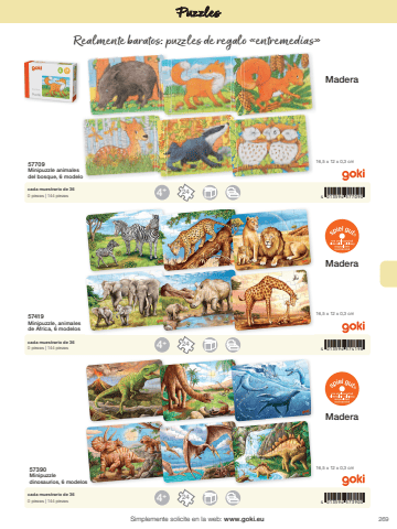 2694 013594 5770904 013594 5741984 013594 5739004+4+4+24242416,5 x 12 x 0,3 cm16,5 x 12 x 0,3 cm16,5 x 12 x 0,3 cmSimplemente solicite en la web: www.goki.euPuzzles57709Minipuzzle animales del bosque, 6 modelo57419Minipuzzle, animales de %u00c1frica, 6 modelos57390Minipuzzle dinosaurios, 6 modeloscada muestrario de 360 piezas | 144 piezascada muestrario de 360 piezas | 144 piezascada muestrario de 360 piezas | 144 piezasMaderaMaderaMaderaRealmente baratos: puzzles de regalo %u00abentremedias%u00bb
