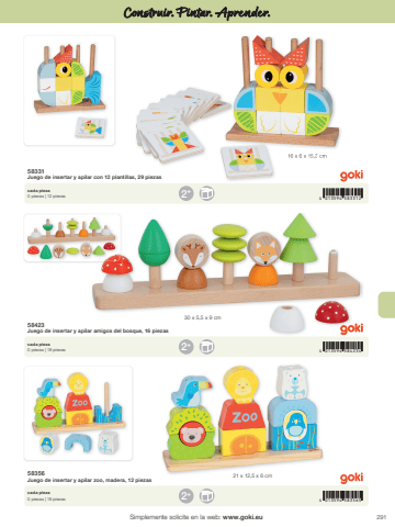 2914 013594 5835654 013594 5842344 013594 5833122+2+2+16 x 6 x 15,3 cm30 x 5,5 x 9 cm21 x 12,5 x 6 cmSimplemente solicite en la web: www.goki.euConstruir. Pintar. Aprender.58356Juego de insertar y apilar zoo, madera, 12 piezas58423Juego de insertar y apilar amigos del bosque, 16 piezas58331Juego de insertar y apilar con 12 plantillas, 29 piezascada pieza0 piezas | 18 piezascada pieza0 piezas | 18 piezascada pieza0 piezas | 12 piezas