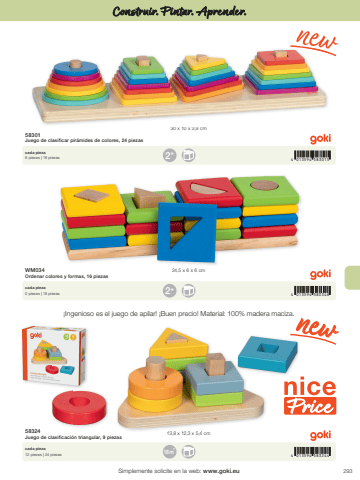2934 013594 5830154 013594 3803484 013594 5832442+2+18 m+24,5 x 6 x 6 cm30 x 10 x 3,9 cm13,8 x 12,3 x 5,4 cmSimplemente solicite en la web: www.goki.euConstruir. Pintar. Aprender.58301Juego de clasificar pir%u00e1mides de colores, 24 piezasWM034Ordenar colores y formas, 16 piezas58324Juego de clasificaci%u00f3n triangular, 9 piezascada pieza8 piezas | 16 piezascada pieza0 piezas | 18 piezascada pieza12 piezas | 24 piezas%u00a1Ingenioso es el juego de apilar! %u00a1Buen precio! Material: 100% madera maciza.