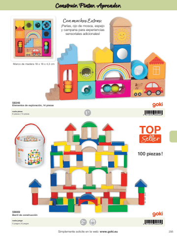 2954 013594 5866964 013594 5834662+1+%u00ef 5 cm %u00f0Simplemente solicite en la web: www.goki.euConstruir. Pintar. Aprender.58669Barril de construcci%u00f3n58346Elementos de exploraci%u00f3n, 14 piezascada juego0 juegos | 6 juegoscada pieza6 piezas | 12 piezasMarco de madera 18 x 18 x 4,3 cm100 piezas !Con muchos Extras:%u00a1Perlas, ojo de mosca, espejoy campana para experiencias sensoriales adicionales!