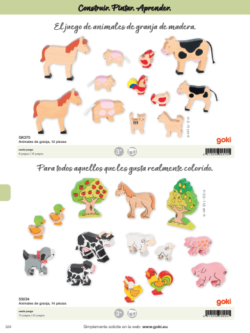 3244 013594 5303474 013594 0537093+3+%u00ef 3 -11 cm %u00f0%u00ef 2,5 - 11,5 cm %u00f0Simplemente solicite en la web: www.goki.euConstruir. Pintar. Aprender.53034Animales de granja, 14 piezasGK370Animales de granja, 12 piezascada juego12 juegos | 24 juegoscada juego8 juegos | 16 juegosEl juego de animales de granja de madera.Para todos aquellos que les gusta realmente colorido.