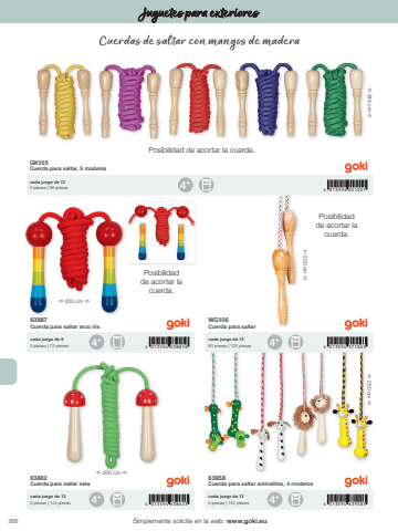 3664 4 013594 051057+4+ 4+4+ 4+4 013594 638876 4 013594 3710634 013594 638623 4 013594 639583%u00ef 245 cm %u00f0%u00ef 230 cm %u00f0%u00ef 200 cm %u00f0%u00ef 200 cm %u00f0%u00ef 250 cm %u00f0Simplemente solicite en la web: www.goki.euJuguetes para exterioresGK105Cuerda para saltar, 5 modeloscada juego de 120 piezas | 96 piezas63887Cuerda para saltar arco irisWG106Cuerda para saltar63958Cuerda para saltar animalitos, 4 modelos63862Cuerda para saltar setacada juego de 60 piezas | 72 piezascada juego de 1260 piezas | 120 piezascada juego de 120 piezas | 144 piezascada juego de 120 piezas | 144 piezasCuerdas de saltar con mangos de maderaPosibilidad de acortar la cuerda.Posibilidad de acortar la cuerda.Posibilidad de acortar la cuerda.