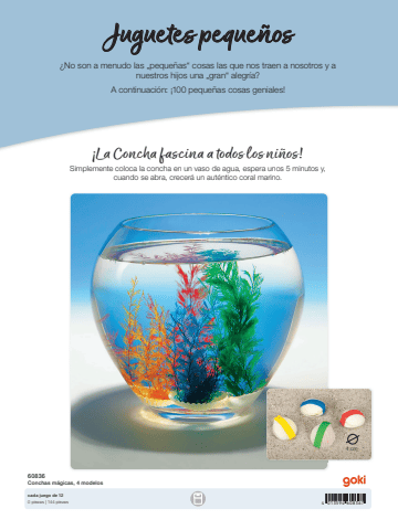 4 013594 6083674 cm60836Conchas m%u00e1gicas, 4 modeloscada juego de 120 piezas | 144 piezas%u00bfNo son a menudo las %u201epeque%u00f1as%u201c cosas las que nos traen a nosotros y a nuestros hijos una %u201egran%u201c alegr%u00eda?A continuaci%u00f3n: %u00a1100 peque%u00f1as cosas geniales!Juguetes peque%u00f1os%u00a1La Concha fascina a todos los ni%u00f1os!Simplemente coloca la concha en un vaso de agua, espera unos 5 minutos y, cuando se abra, crecer%u00e1 un aut%u00e9ntico coral marino.