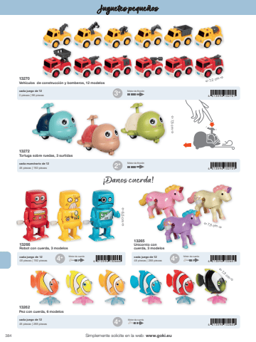 3844 4 013594 132664 4 013594 132657+ 4+4 013594 1326264 013594 1327254 013594 1327014+2+3+%u00ef 7,2 cm %u00f0%u00ef 7,5 cm %u00f0%u00ef 7,5 cm %u00f0%u00ef 6,5 cm %u00f0%u00ef 7,3 cm %u00f0Simplemente solicite en la web: www.goki.euJuguetes peque%u00f1os13266Robot con cuerda, 3 modelos13265Unicornio con cuerda, 3 modeloscada juego de 1248 piezas | 192 piezascada juego de 1248 piezas | 288 piezas13262Pez con cuerda, 6 modelos13272Tortuga sobre ruedas, 3 surtidas13270Veh%u00edculos de construcci%u00f3n y bomberos, 12 modeloscada juego de 1248 piezas | 288 piezascada muestrario de 1248 piezas | 192 piezascada juego de 120 piezas | 96 piezas%u00a1Danos cuerda!Motor de fricci%u00f3nMotor de fricci%u00f3nMotor de cuerda Motor de cuerdaMotor de cuerda