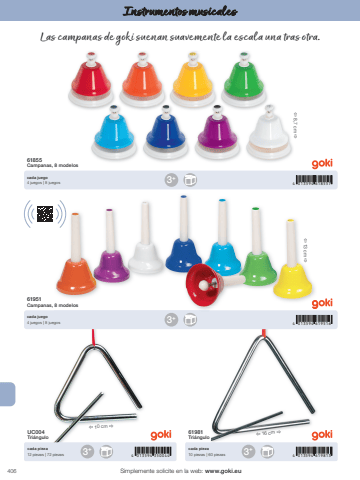 406%u00ef 16 cm %u00f0%u00ef 10 cm %u00f04 013594 6185574 013594 6195163+3+3+ 3+4 013594 350044 4 013594 619813%u00ef 8,7 cm %u00f0%u00ef 13 cm %u00f0Simplemente solicite en la web: www.goki.euInstrumentos musicales61855Campanas, 8 modelos61951Campanas, 8 modeloscada juego4 juegos | 8 juegoscada juego4 juegos | 8 juegos61981Tri%u00e1nguloUC004Tri%u00e1ngulocada pieza10 piezas | 60 piezascada pieza12 piezas | 72 piezasLas campanas de goki suenan suavemente la escala una tras otra.