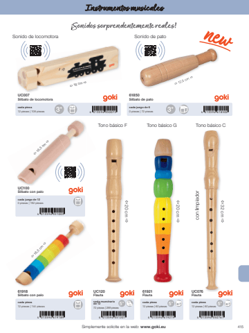 4153+ 3+4 013594 350075 4 013594 6185024 013594 619189 4 013594 351201 4 013594 619219 4 013594 3507614 013594 3510035+ 5+ 5+%u00ef 12,5 cm %u00f0%u00ef 18 cm %u00f0%u00ef 16,5 cm %u00f0%u00ef 16,5 cm %u00f0%u00ef 32 cm %u00f0%u00ef 20 cm %u00f0%u00ef 20 cm %u00f0Simplemente solicite en la web: www.goki.euInstrumentos musicalesUC007Silbato de locomotora61850Silbato de patocada pieza12 piezas | 108 piezascada juego de 60 piezas | 72 piezasUC076Flauta61921FlautaUC120Flauta61918Silbato con paloUC100Silbato con palocada pieza12 piezas | 60 piezascada pieza12 piezas | 60 piezascada muestrario de 1272 piezas | 288 piezascada pieza12 piezas | 144 piezascada juego de 120 piezas | 192 piezas%u00a1Sonidos sorprendentemente reales!Sonido de patoTono b%u00e1sico F Tono b%u00e1sico G Tono b%u00e1sico CSonido de locomotoracon limpiador