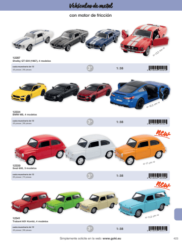 4234 013594 1228704 013594 1233414 013594 1233964 013594 1234193+3+3+3+ 1 : 381 : 381 : 381 : 38%u00ef 12,5 cm %u00f0%u00ef 12,5 cm %u00f0%u00ef 11 cm %u00f0%u00ef 11,5 cm %u00f0Simplemente solicite en la web: www.goki.euVeh%u00edculos de metalcon motor de fricci%u00f3n12287Shelby GT-500 (1967), 4 modelos12334BMW M8, 4 modelos12339Seat 600, 3 modelos12341Trabant 601 Kombi, 4 modeloscada muestrario de 1248 piezas | 96 piezascada muestrario de 1248 piezas | 96 piezascada muestrario de 1236 piezas | 72 piezascada muestrario de 1248 piezas | 96 piezas