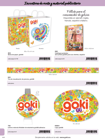 44436 x 12 x 41 cm4 013594 0080374 013594 008433100 x 3,8 cm10,5 x 14,8 cm4 013594 007931 4 013594 66904710 cm70 x 50 cm3Come molte altre aziende, goki ha sviluppato la propria responsabilit%u00e0 socio-ecologica ispirandosi alla %u201ccultura hippie%u201d.Rivitalizzare il grande obiettivoCreare una cultura della comunit%u00e0 e della solidariet%u00e0 basata sul rispetto reciproco, sulla comprensione e sulla cooperazione.%u201eTutto chi%u00f2 che facciamo,lo facciamo per i bambimi%u201c.Se vuoi saperne di pi%u00f9 su %u201cgoki66%u201d, leggi la storia molto personale del fondatore della nostra azienda. %u00c8 lui che ha avuto l%u2019idea di questa serie...3Come molte altre aziende, goki ha sviluppato la propria responsabilit%u00e0 socio-ecologica ispirandosi alla %u201ccultura hippie%u201d.Rivitalizzare il grande obiettivoCreare una cultura della comunit%u00e0 e della solidariet%u00e0 basata sul rispetto reciproco, sulla comprensione e sulla cooperazione.%u201eTutto chi%u00f2 che facciamo,lo facciamo per i bambimi%u201c.facciamo,Se vuoi saperne di pi%u00f9 su %u201cgoki66%u201d, leggi la storia molto personale del fondatore della nostra azienda. %u00c8 lui che ha avuto l%u2019idea di questa serie...10 cmSimplemente solicite en la web: www.goki.euIncentivos de venta y material publicitario803Bolsa de papel, goki66860Cat%u00e1logos gratuitos del surtido goki66 para sus clientes, espa%u00f1olcada juego de 100 cada juego de 25843Tira de visualizaci%u00f3n de precios, goki66cada pieza793Letrero redondo Wobbler de estanter%u00eda goki66 adhesivo66904Logo goki66cada juego de 3 cada piezaRev%u00e9s AnversoFolleto para el consumidor de goki66Disponible en alem%u00e1n, ingl%u00e9s, franc%u00e9s, espa%u00f1ol e italiano.4 013594 008600