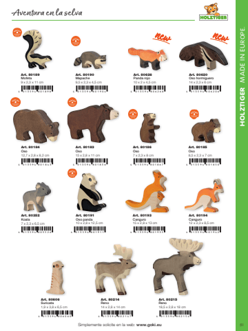 51HOLZTIGER MADE IN EUROPE.4 0 1 3 5 9 4 8 0 1 8 4 34 0 1 3 5 9 4 8035 2 64 0 1 3 5 9 4 8 0 2147 4 0 1 3 5 9 4 8 0 2 1 5 44 0 1 3 5 9 4 8 0 1 8364 0 1 3 5 9 4 8 0 19114 0 1 3 5 9 4 8 0 1 8 6 74 0 1 3 5 9 4 8 0 1 9 3 54 0 1 3 5 9 4 8 0 1 8504 0 1 3 5 9 4 8 0 19424 0 1 3 5 9 4 8 0 1 8 9 8 4 0 1 3 5 9 4 8 0 1 9 0 4 4 0 1 3 5 9 4 806 2 6 8 4 0 1 3 5 9 4 806 2 0 64 0 1 3 5 9 4 806060Simplemente solicite en la web: www.goki.euAventura en la selvaArt. 80189 Mofeta9 x 2,3 x 11 cmArt. 80626 Panda rojo10 x 2 x 4,5 cmArt. 80620 Oso hormiguero14 x 2,3 x 6 cmArt. 80190Mapache9,5 x 2,3 x 4,5 cmArt. 80352Koala7 x 2,3 x 6,5 cmArt. 80184Oso12,7 x 2,8 x 8,2 cmArt. 80183Oso15 x 2,8 x 11 cmArt. 80186Oso7 x 2,3 x 8 cmArt. 80185 Oso8,5 x 2,3 x 7 cmArt. 80191Oso panda10 x 2,8 x 12,5 cmArt. 80193Canguro15 x 2,8 x 13 cmArt. 80194 Canguro12 x 2,3 x 8,5 cmArt. 80214 Reno14 x 2,8 x 14 cmArt. 80215 Reno18,5 x 2,8 x 18 cmArt. 80606 Suricata1,9 x 3,8 x 6,5 cm