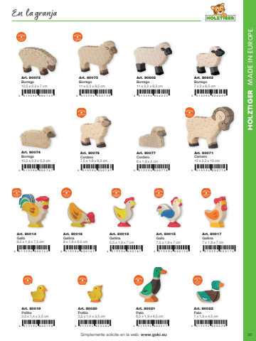 55HOLZTIGER MADE IN EUROPE.4 0 1 3 5 9 4 800 7 6 1 4 0 1 3 5 9 4 800 7 1 64 0 1 3 5 9 4 800 1 9 84 0 1 3 5 9 4 800 1 4 3 4 0 1 3 5 9 4 800 1 6 7 4 0 1 3 5 9 4 800 1 8 1 4 0 1 3 5 9 4 800 1 5 0 4 0 1 3 5 9 4 800 1744 0 1 3 5 9 4 800 7 2 34 0 1 3 5 9 4 800 7 7 84 0 1 3 5 9 4 800 2 0 44 0 1 3 5 9 4 800 7 3 0 4 0 1 3 5 9 4 8060 2 2 4 0 1 3 5 9 4 80603 94 0 1 3 5 9 4 800 2114 0 1 3 5 9 4 800 7474 0 1 3 5 9 4 800 2 2 8Simplemente solicite en la web: www.goki.euArt. 80071 Carnero12 x 2,3 x 10 cmArt. 80072Borrego 10,5 x 2,3 x 7 cmArt. 80073 Borrego 11 x 2,3 x 8,5 cmArt. 80602 Borrego11 x 2,2 x 8,3 cmArt. 80603 Borrego7 x 2 x 6,5 cmArt. 80074 Borrego 10,5 x 2,3 x 5,5 cmArt. 80076 Cordero7,5 x 1,9 x 6,5 cmArt. 80014 Gallo8,5 x 1,9 x 7,5 cmArt. 80016 Gallina8 x 1,9 x 6,5 cmArt. 80077Cordero6 x 1,9 x 4 cmArt. 80018Gallina5,5 x 1,9 x 7 cmArt. 80017Gallina7 x 1,9 x 7 cmArt. 80015Gallo7,5 x 1,9 x 7 cmArt. 80019 Pollito3,5 x 1,4 x 3,5 cmArt. 80020 Pollito3,5 x 1,4 x 3,5 cmArt. 80021Pato 6,5 x 1,9 x 6,5 cmArt. 80022Pato7 x 1,9 x 4,5 cmEn la granja