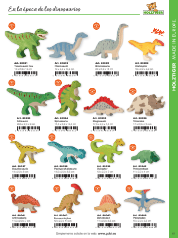 61HOLZTIGER MADE IN EUROPE.4 0 1 3 5 9 4 8033 1 14 0 1 3 5 9 4 8033354 0 1 3 5 9 4 8033 7 34 0 1 3 5 9 4 803 4 1 04 0 1 3 5 9 4 8033804 0 1 3 5 9 4 803 4 0 34 0 1 3 5 9 4 8033 9 74 0 1 3 5 9 4 803 4 3 44 0 1 3 5 9 4 803 4274 0 1 3 5 9 4 80608 44 0 1 3 5 9 4 8033 4 2 4 0 1 3 5 9 4 80335 9 4 0 1 3 5 9 4 8033664 0 1 3 5 9 4 8060 9 1 4 0 1 3 5 9 4 8033 2 8 4 0 1 3 5 9 4 806 2 8 2Simplemente solicite en la web: www.goki.euEn la %u00e9poca de los dinosauriosArt. 80332 Brontosaurio20 x 2,3 x 14 cmArt. 80628 Utahraptor16 x 2,2 x 8,8 cmArt. 80609 Plesiosaurio19 x 2,3 x 10,8 cmArt. 80333Allosaurio20,5 x 2,3 x 9 cmArt. 80336 Triceratos17 x 2,3 x 7,5 cmArt. 80335Stegosaurio 17,5 x 2,3 x 7,5 cmArt. 80334 Spinosaurio11,5 x 2,3 x 12,5 cmArt. 80337 Staurikosaurio14 x 2,3 x 8 cmArt. 80338 Pachycephalosaurio14,5 x 2,3 x 6,5 cmArt. 80339 Oviraptor13 x 2,3 x 9 cmArt. 80343 Dimetrodon11 x 2,3 x 6,5 cmArt. 80608 Pt%u00e9ranodon 16 x 2,3 x 8,5 cmArt. 80342 Protoceratops11 x 2,3 x 4 cmArt. 80341Ankylosaurio 11,5 x 2,3 x 7 cmArt. 80340Parasaurolophus12 x 2,3 x 14 cmArt. 80331Tiranosaurio Rex10 x 2,3 x 13 cm