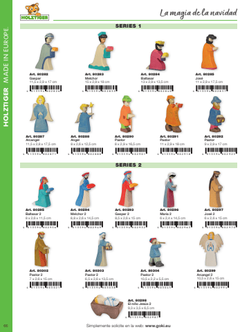 66HOLZTIGER MADE IN EUROPE.4 0 1 3 5 9 4 8 0 2 8 2 64 0 1 3 5 9 4 8 0 2 8 7 14 0 1 3 5 9 4 8 0 2 9 5 64 0 1 3 5 9 4 8 0 29944 0 1 3 5 9 4 8 0 2 9 8 74 0 1 3 5 9 4 8 0 2 8334 0 1 3 5 9 4 8 0 2 8884 0 1 3 5 9 4 8 0 29494 0 1 3 5 9 4 8 0 2 8 4 04 0 1 3 5 9 4 8 0 2 9 0 14 0 1 3 5 9 4 8 0 2 9 3 24 0 1 3 5 9 4 8030 2 14 0 1 3 5 9 4 8 0 2 8 5 74 0 1 3 5 9 4 8 0 291 84 0 1 3 5 9 4 8 0 2 9 6 34 0 1 3 5 9 4 8030384 0 1 3 5 9 4 8 0 292 54 0 1 3 5 9 4 8 0 297 04 0 1 3 5 9 4 8030 4 5Simplemente solicite en la web: www.goki.euLa magia de la navidadSERIES 1SERIES 2Art. 80282Gaspar11,5 x 2,9 x 17 cmArt. 80283Melchor15 x 2,9 x 18 cmArt. 80284Baltasar 13 x 2,9 x 13,5 cmArt. 80285Jos%u00e911 x 2,9 x 17,5 cmArt. 80287Arcangel11,5 x 2,8 x 17,5 cmArt. 80288 Angel8 x 2,6 x 12,5 cmArt. 80290Pastor8 x 2,9 x 16,5 cmArt. 80291Pastor 11 x 2,9 x 18 cmArt. 80292 Pastor 9 x 2,9 x 17 cmArt. 80295Baltasar 28 x 2,6 x 11,5 cmArt. 80297Jos%u00e9 2 6 x 2,6 x 15 cmArt. 80296Maria 26 x 2,4 x 14,5 cmArt. 80293Gaspar 2 8,5 x 2,6 x 15 cmArt. 80294 Melchor 28,8 x 2,6 x 14,5 cmArt. 80298El ni%u00f1o Jes%u00fas 29,3 x 3,5 x 6,5 cmArt. 80299 Arcangel 210,5 x 2,6 x 15 cmArt. 80304 Pastor 2 10,5 x 2,2 x 5,5 cmArt. 80303 Pastor 2 6,5 x 2,6 x 13,5 cmArt. 80302 Pastor 2 7 x 2,6 x 15 cm