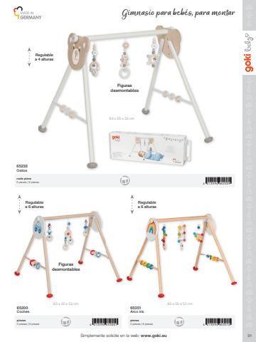914 013594 6523394 013594 652001 4 013594 65351063 x 55 x 53 cm 63 x 55 x 53 cm63 x 55 x 53 cmSimplemente solicite en la web: www.goki.eu65233Ositos cada pieza0 piezas | 8 piezas65200Coches65351Arco irispiezas0 piezas | 8 piezaspiezas0 piezas | 8 piezasGimnasio para beb%u00e9s, para montarRegulablea 4 alturasRegulablea 6 alturasRegulablea 6 alturasFiguras desmontablesFiguras desmontables